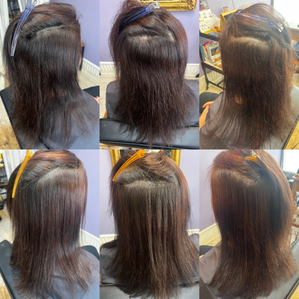 ホームカラーの傷みは毛先に多少ありましたが、